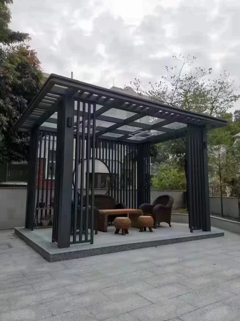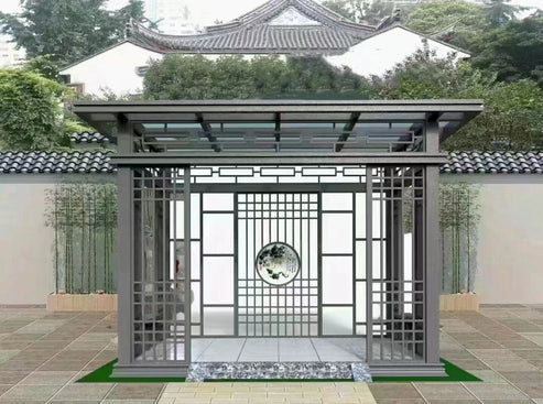 Asian Luxury Aluminum Pergola with Tempered Glass Roof 10’x13′