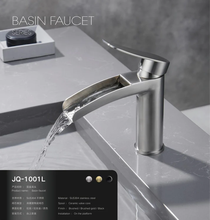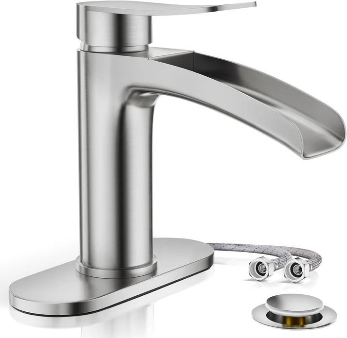 Bathroom Basin Faucet, One Hole One Handle Waterfall Modern Bathroom Faucet, with Water Supply Line JQ-1001LS